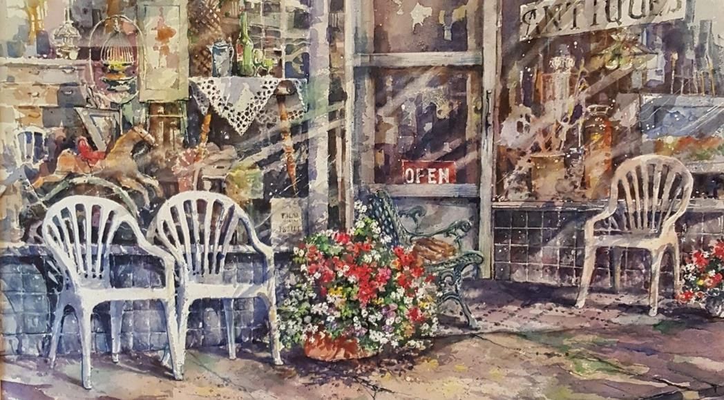 An exhibitor at the local Red Barn Arts Festival for many years now, well-known Missouri watercolor artist Ron Hediger offers his original greeting cards at Gallery 104.